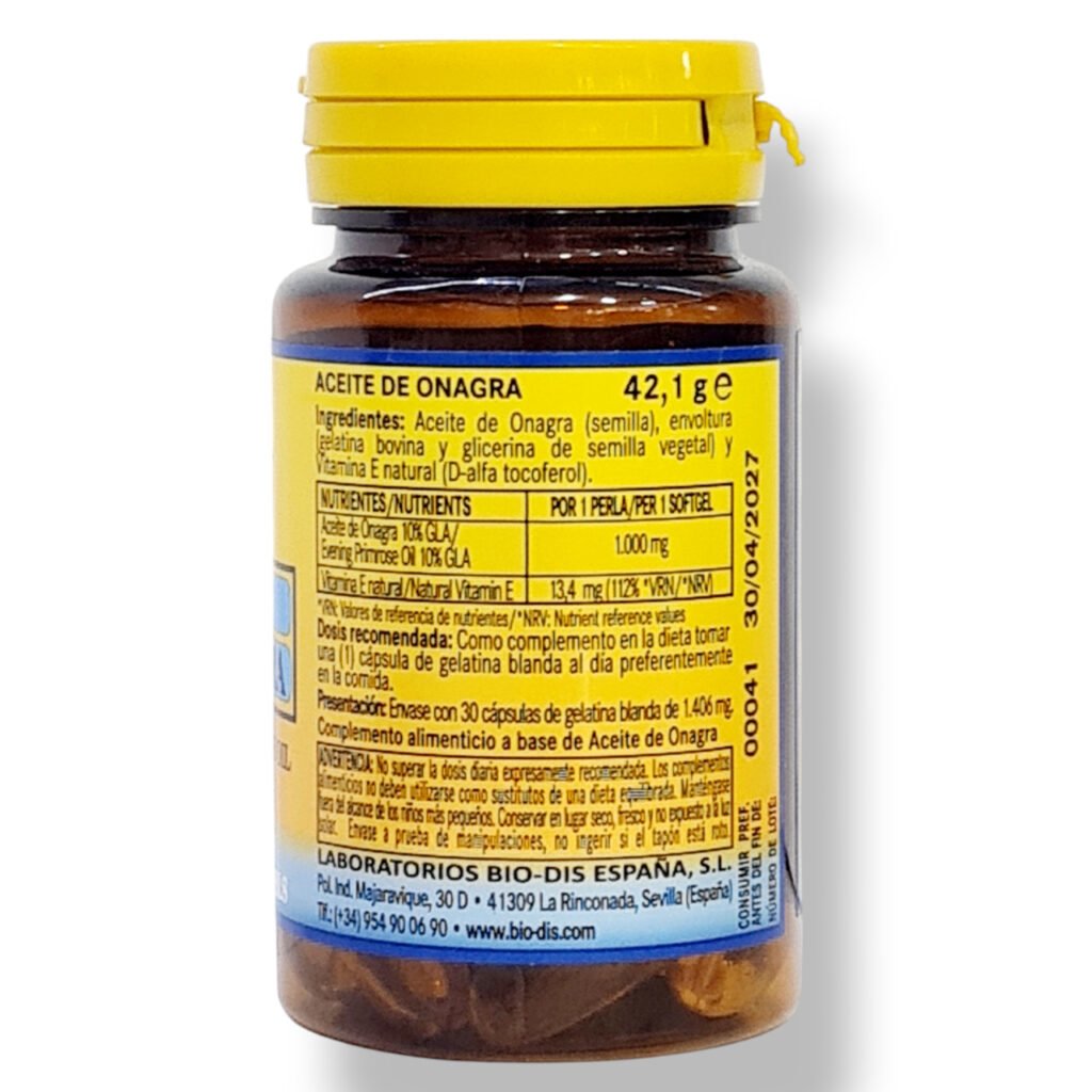- Aceite de Onagra 10% GLA 1.000 mg por perla.