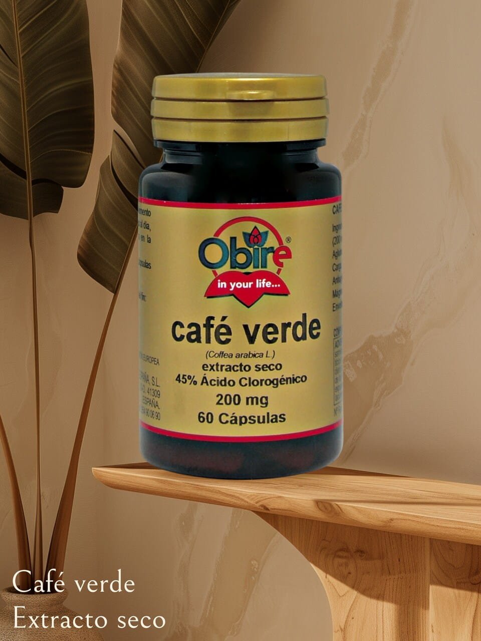 Café verde 200 mg cápsulas de Obire está formulado con extracto seco de café verde valorado en 45% de ácido clorogénico. el café verde tiene propiedades estimulantes y diuréticas, a diferencia del café tostado aumenta el metabolismo lipídico.