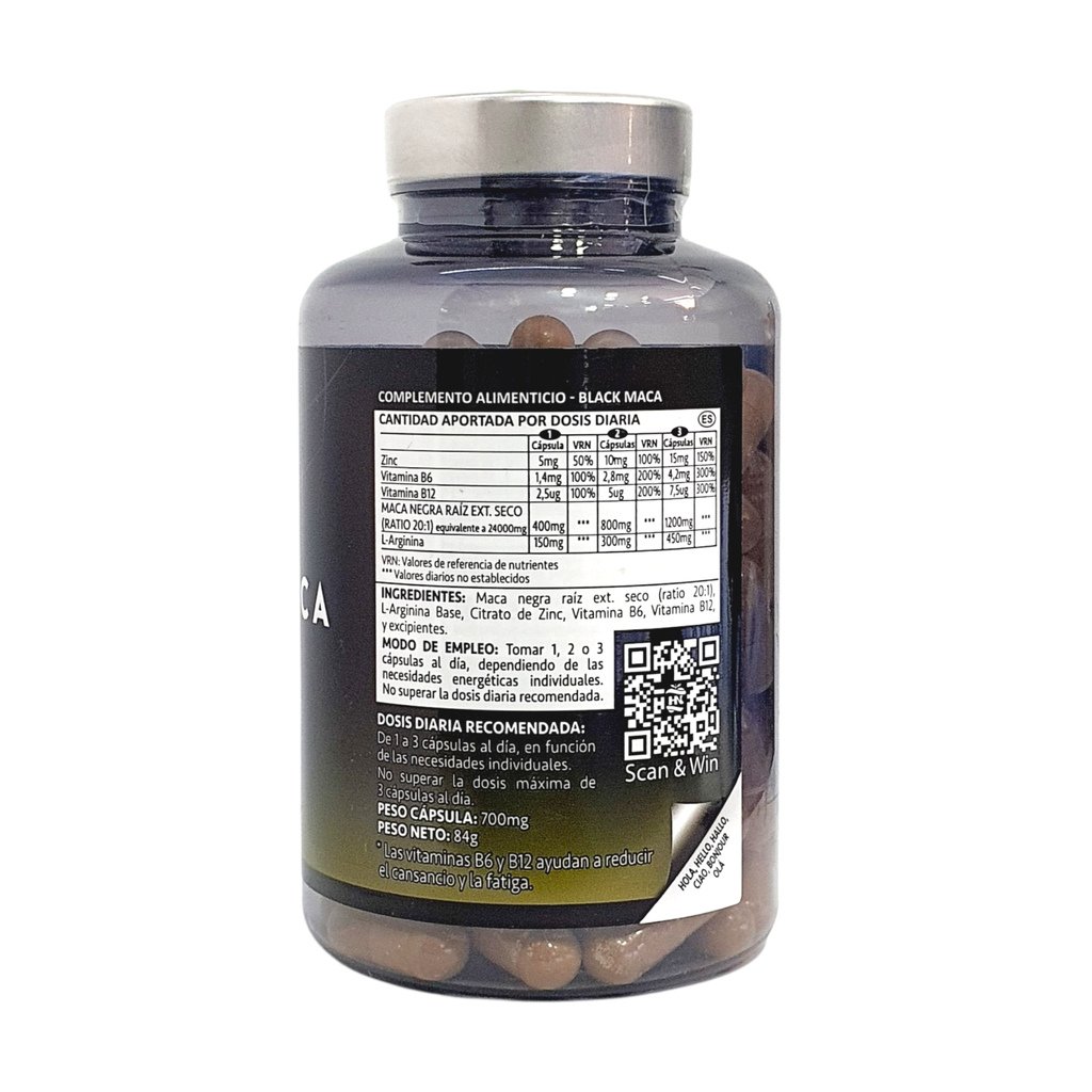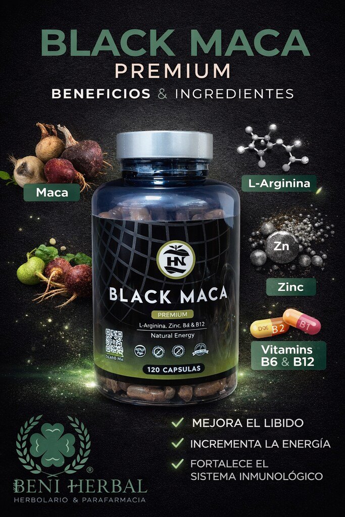 | Ingredientes Clave | Maca Negra, L-Arginina, Zinc, Vitamina B6 y B12 |