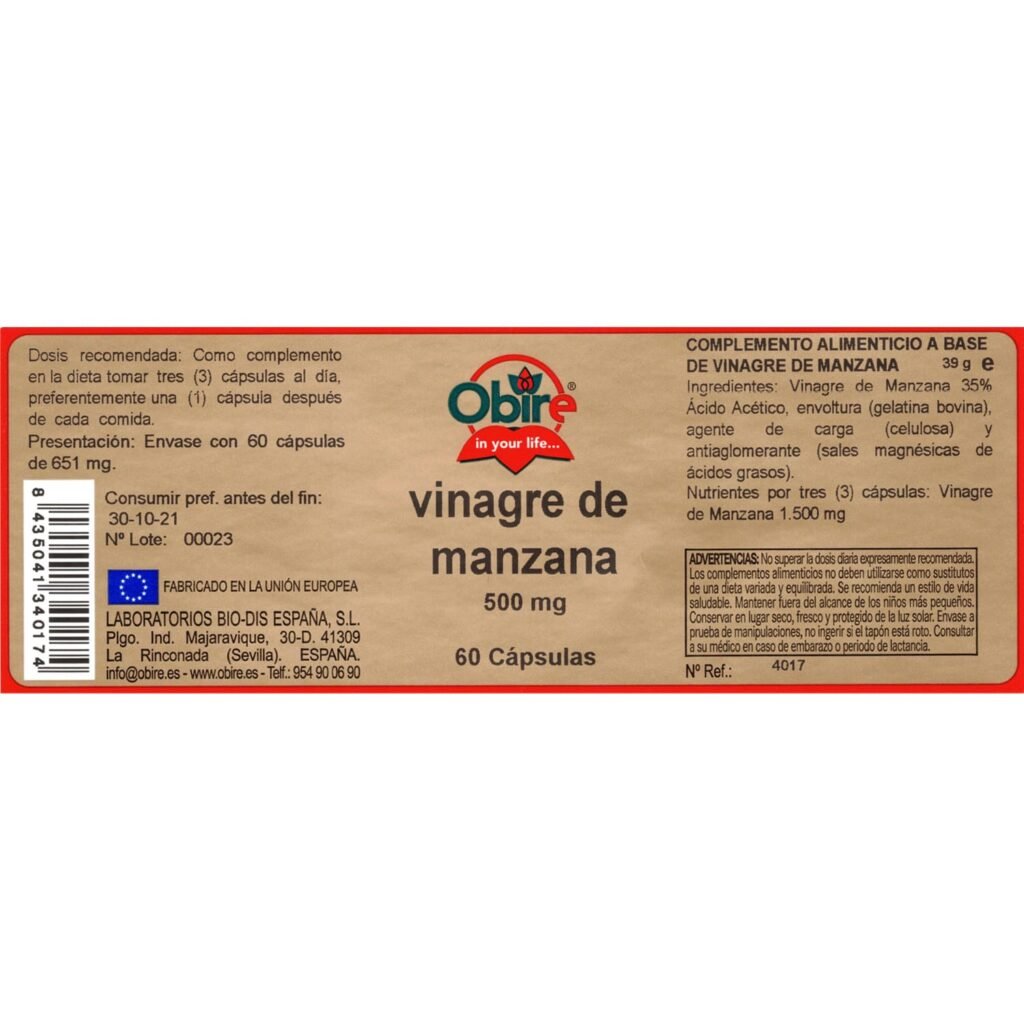 Vinagre de manzana 500 mg 60 cápsulas de Obire
